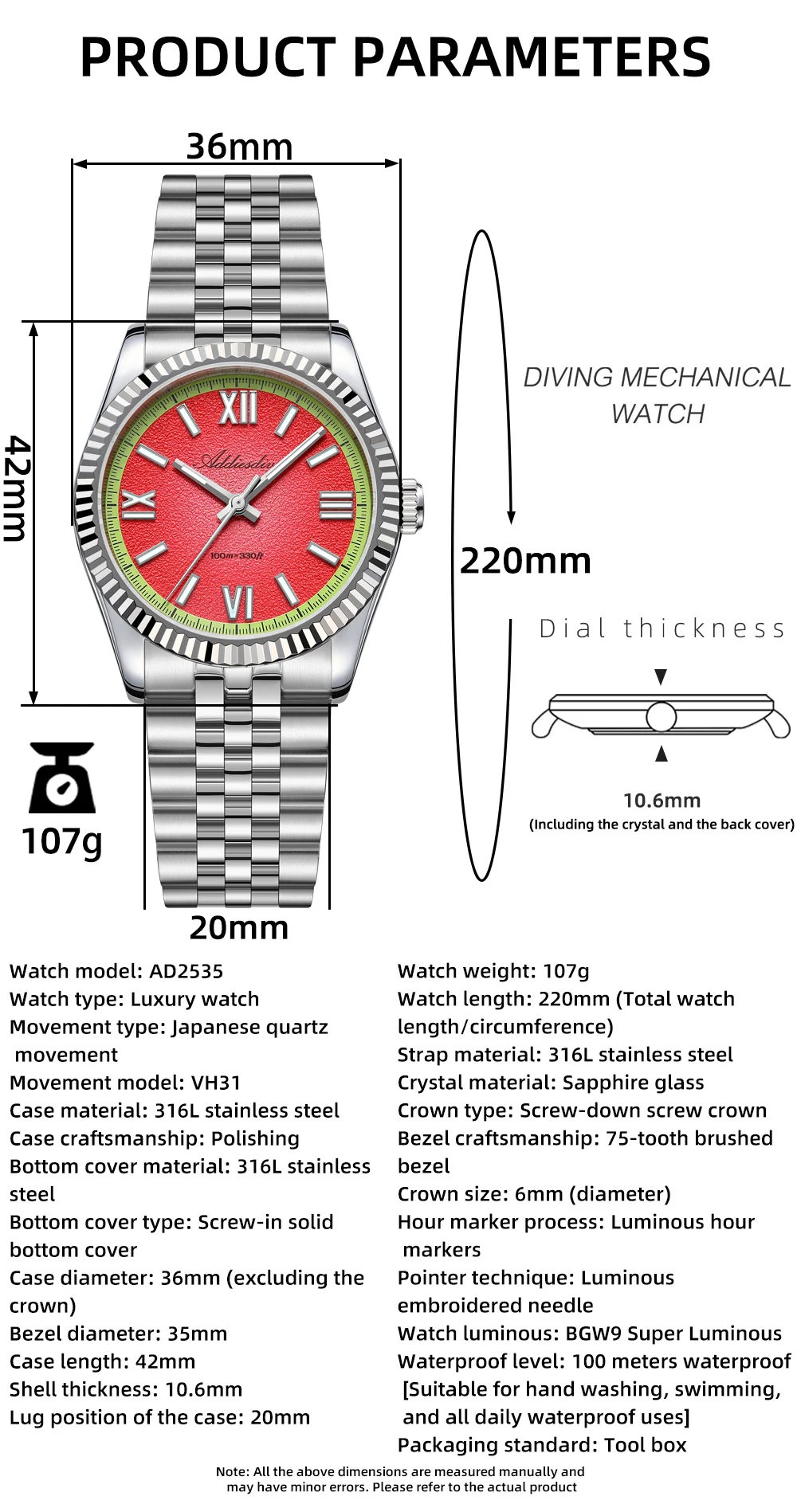 O Addiesdive Fun Fruit Series une um design alegre e marcante com especificações técnicas que normalmente só aparecem em relógios muito mais caros. Equipado com movimento japonês Seiko VH31, caixa em aço inoxidável 316L e cristal de safira, ele foi feito para acompanhar sua rotina, inclusive em atividades aquáticas, com estilo e confiança.