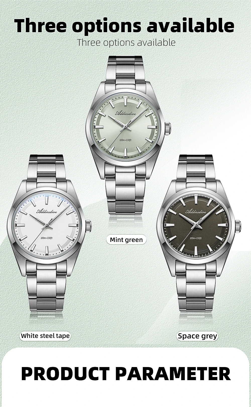 Com mostrador de efeito raios de sol, marcadores aplicados e proporções equilibradas, o Addiesdive Legacy entrega um visual limpo e elegante, ideal tanto para ambientes profissionais quanto para ocasiões especiais.