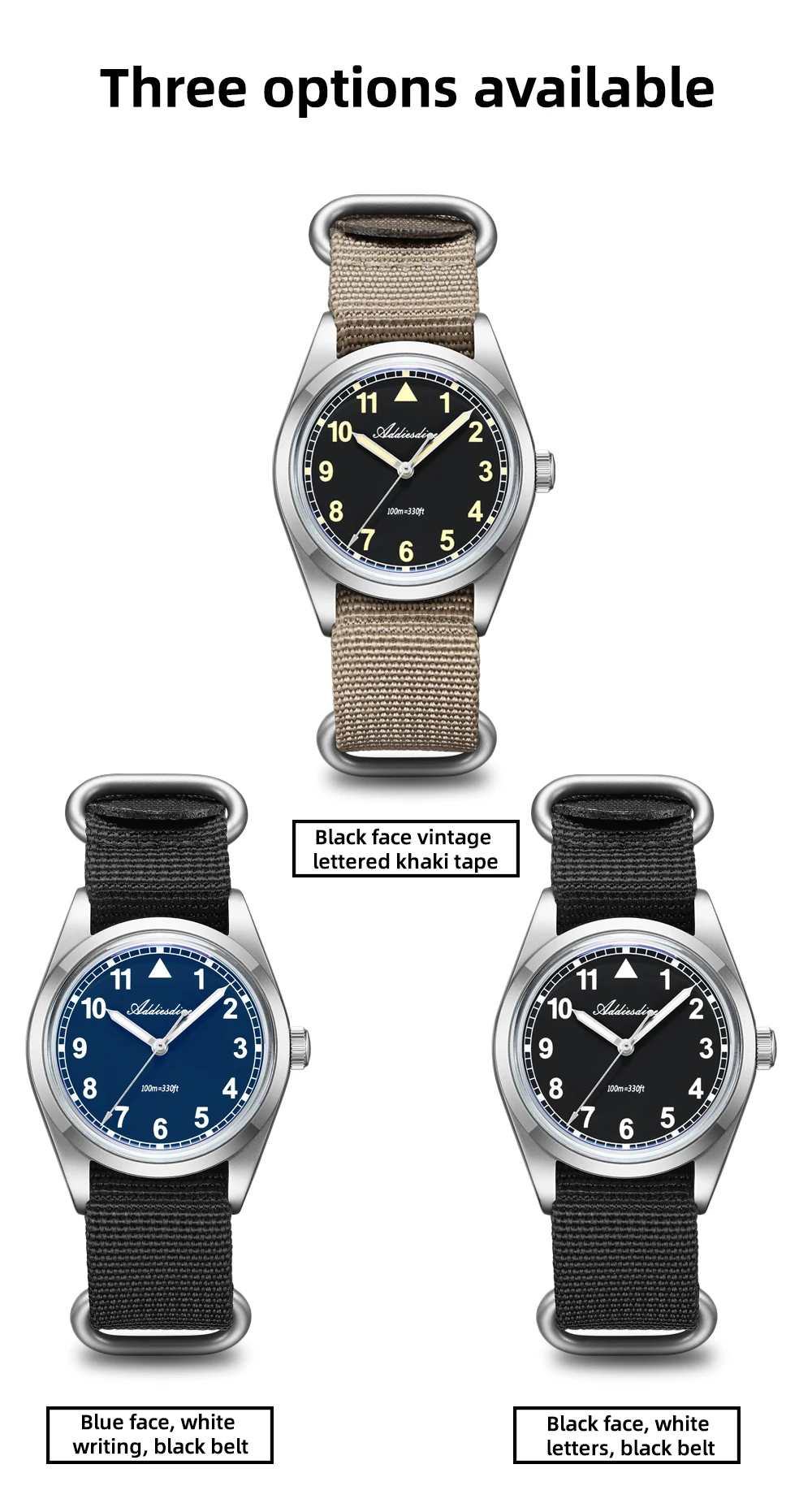 O Addiesdive Field não é um relógio comum — é um verdadeiro relógio de campo, pensado para quem precisa de confiabilidade todos os dias. Inspirado nos icônicos relógios militares, ele une design limpo, construção robusta e um diferencial raro: o movimento de segundos contínuos, que entrega sensação premium e leitura suave no pulso. É o tipo de relógio que funciona no trabalho, na aventura e na vida real.