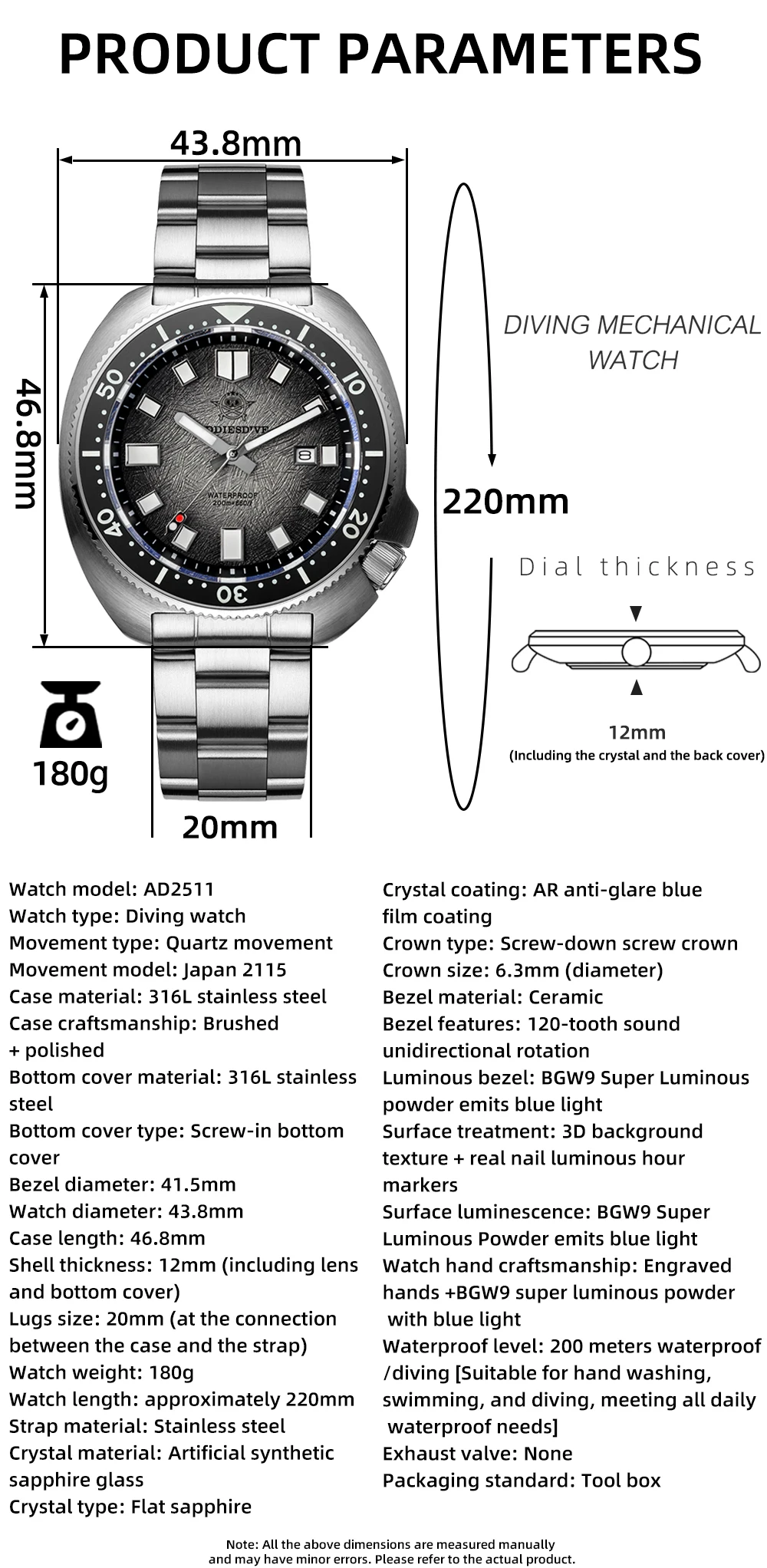 O Addiesdive Turtle Willard foi feito para quem quer um verdadeiro diver no pulso. Inspirado em modelos clássicos consagrados, ele combina design imponente com construção sólida em aço 316L, cristal de safira e resistência de 200 metros, oferecendo tudo o que você precisa para uso intenso, dentro e fora d’água.