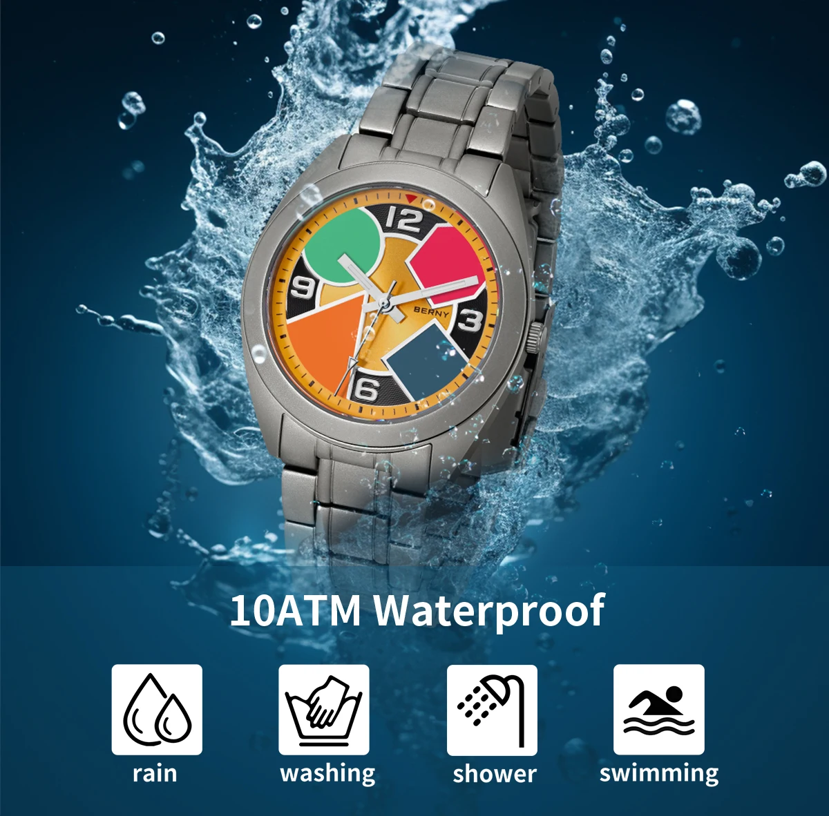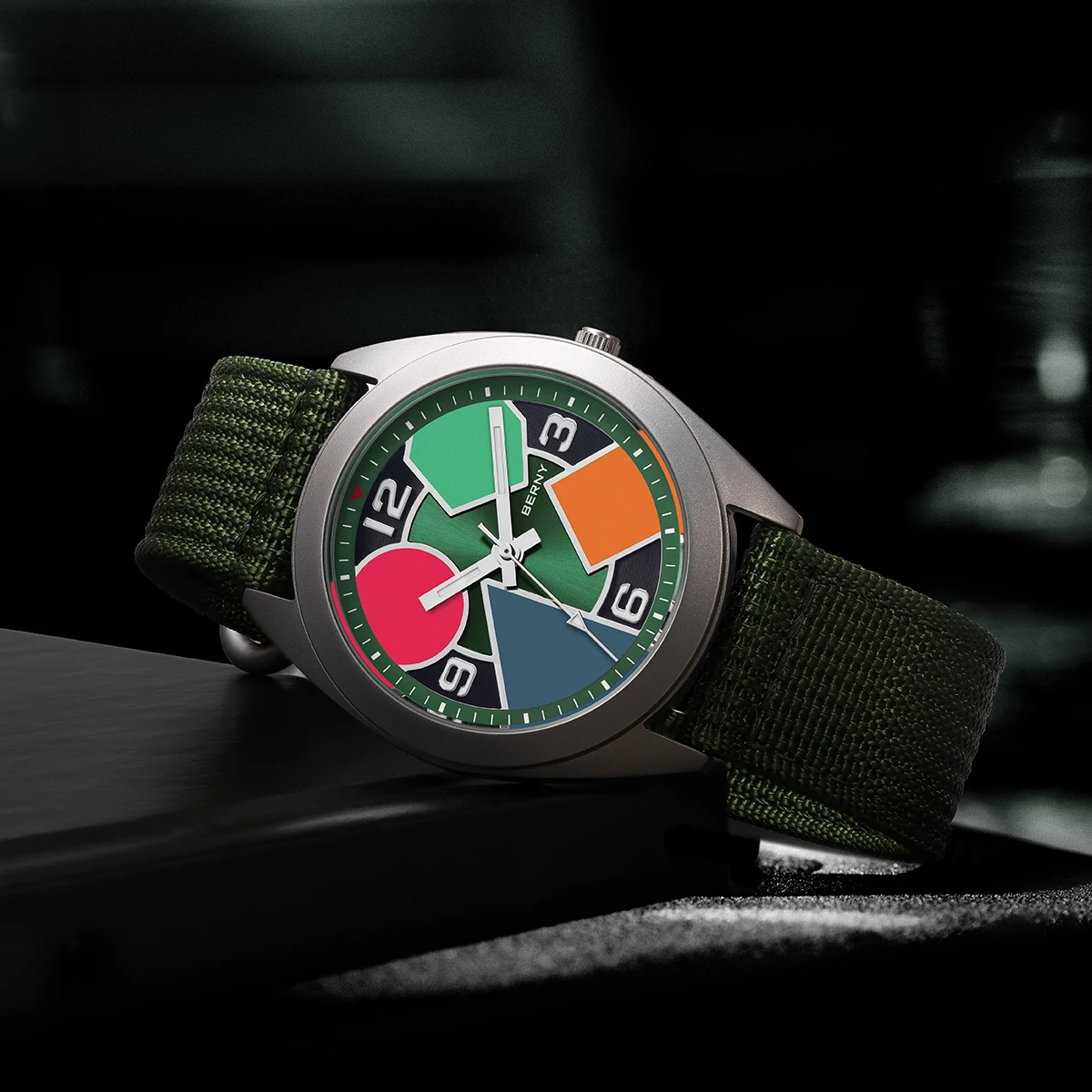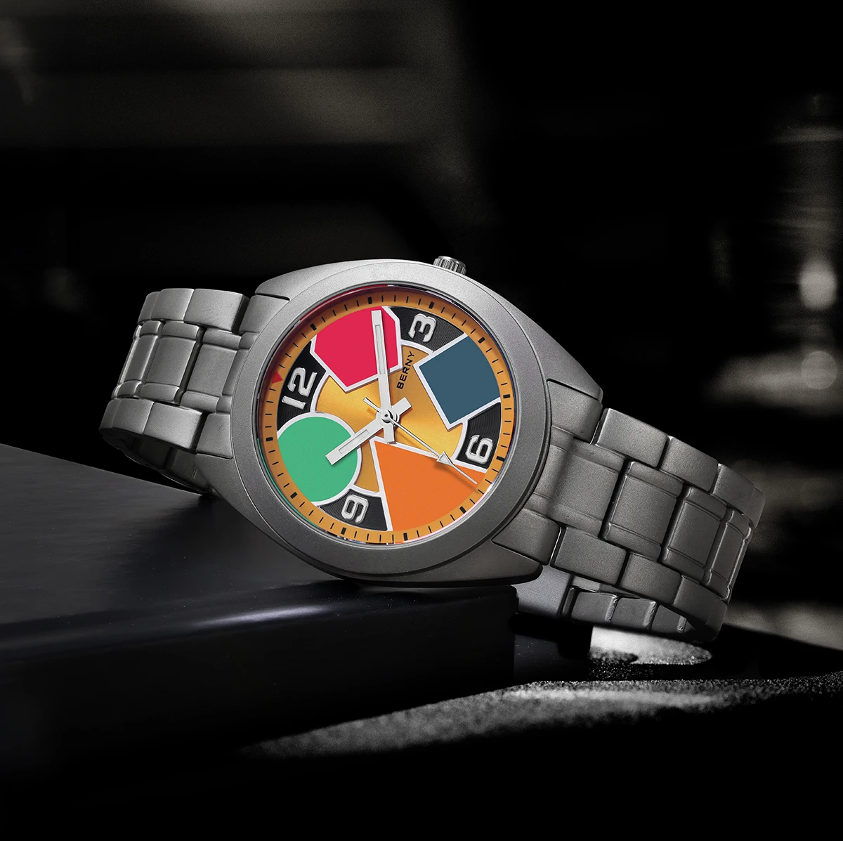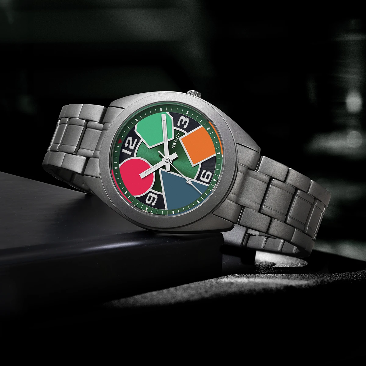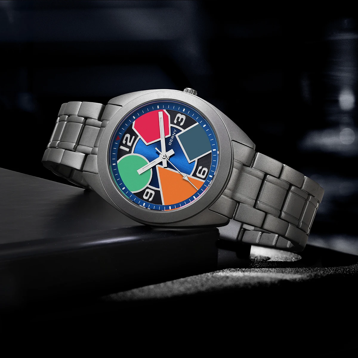 O Berny Geometric Titanium foi criado para quem valoriza conforto absoluto, design moderno e materiais premium. Sua caixa em titânio sólido oferece uma sensação quase imperceptível no pulso, sem abrir mão de resistência e durabilidade, enquanto o visual geométrico com cores contrastantes entrega personalidade e sofisticação fora do padrão.