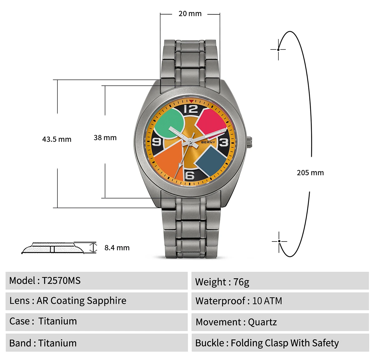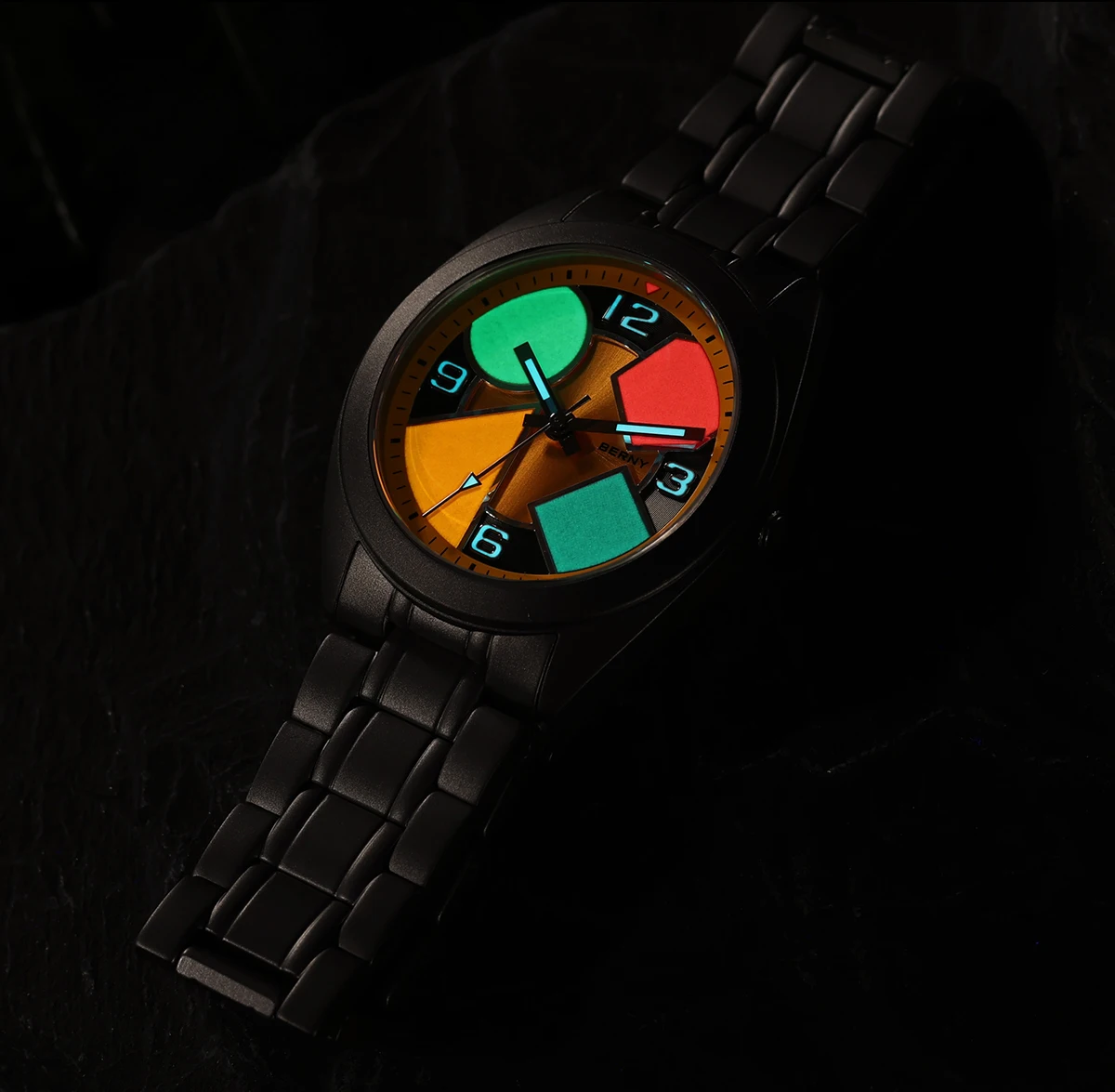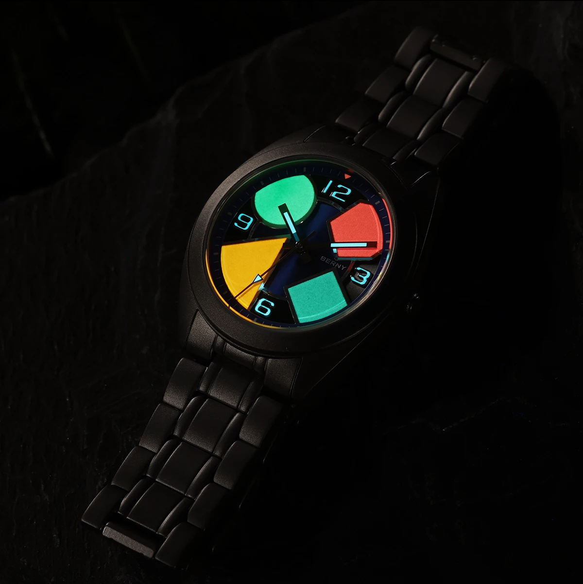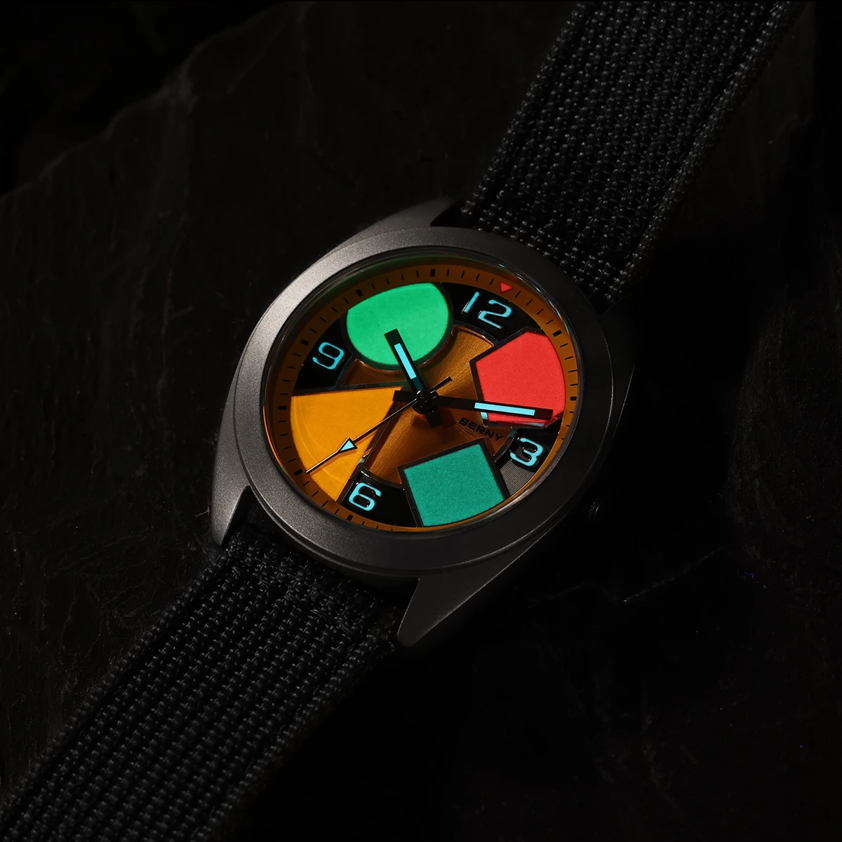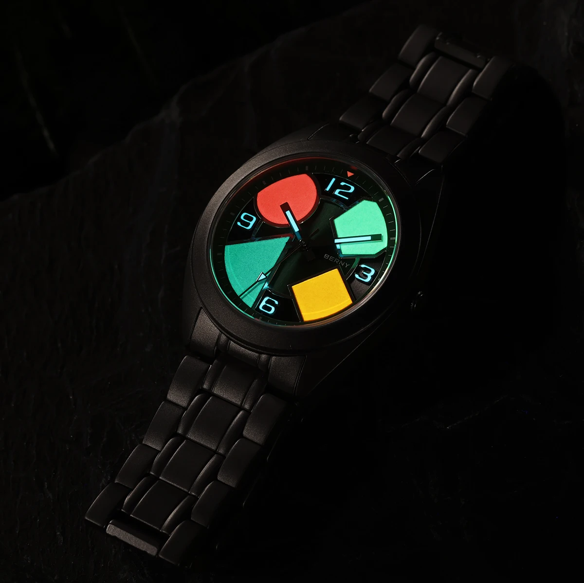 O Berny Geometric Titanium foi criado para quem valoriza conforto absoluto, design moderno e materiais premium. Sua caixa em titânio sólido oferece uma sensação quase imperceptível no pulso, sem abrir mão de resistência e durabilidade, enquanto o visual geométrico com cores contrastantes entrega personalidade e sofisticação fora do padrão.
