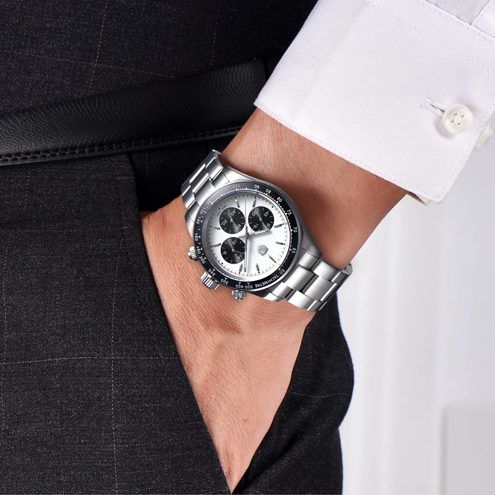 Equipado com o confiável movimento cronógrafo japonês VK63, o Rollstimi Panda Color entrega marcações exatas e estabilidade absoluta. Você tem controle total do tempo sem esforço, sem corda e sem complicações — apenas precisão constante no seu dia a dia.